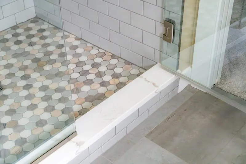 - Floor, wall, and accent tile selected and installed in-house from layout through grouting. We work with large-format tile, patterned floor tile, and custom mosaic accents depending on what the space calls for.