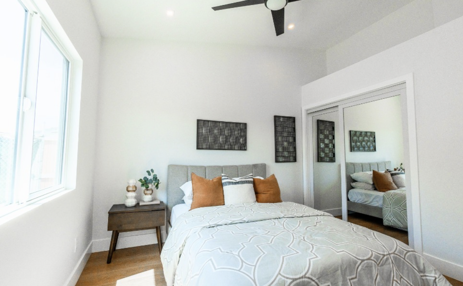 Insulated walls and ceiling, installed mini-split HVAC, added natural light with new windows, ran fiber conduit, and finished to a clean modern standard.